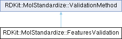 Public Member Functions inherited from RDKit::MolStandardize::ValidationMethod | |