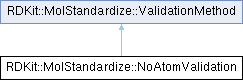 Public Member Functions inherited from RDKit::MolStandardize::ValidationMethod | |