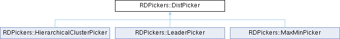Implemented in RDPickers::HierarchicalClusterPicker, RDPickers::LeaderPicker, and RDPickers::MaxMinPicker.